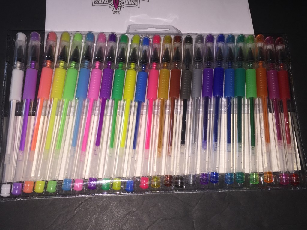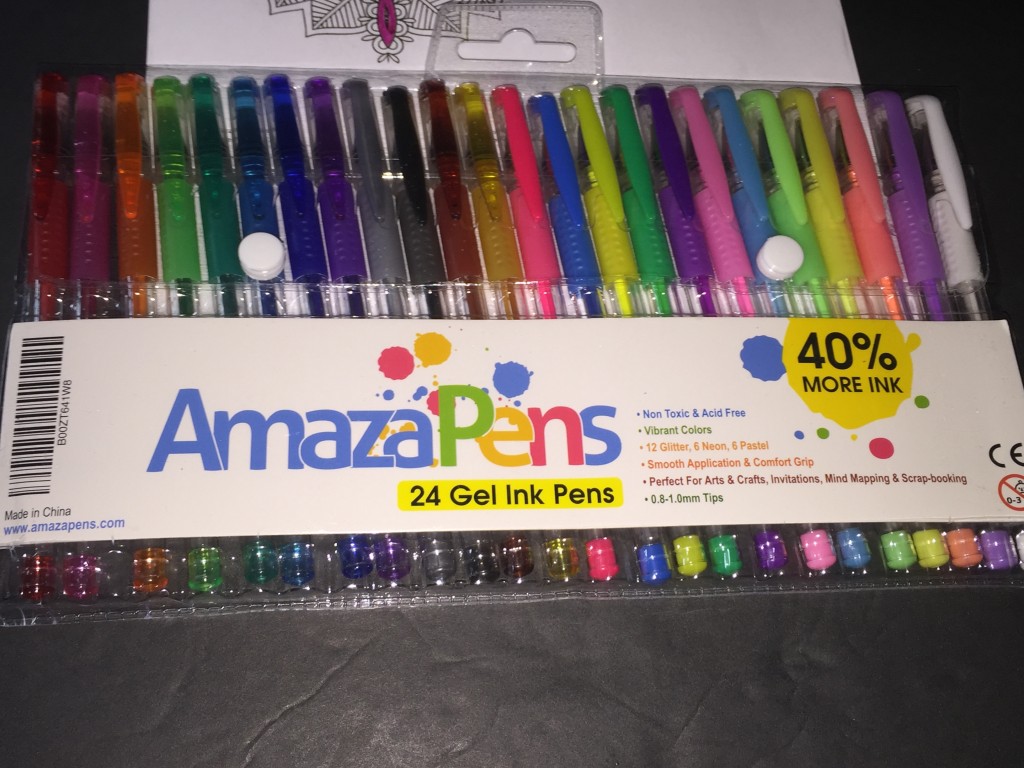 AmazaPens Gel Coloring Pens (Sample received for testing in exchange to my honest and unbiased opinion and this opinion is not compensated) The gel pens write so smooth and some have glitter in them and the others don’t. I wanted to show some of the places I colored in. There is a variety of colors to choose from. While writing or coloring, the tips roll very smooth on the paper.