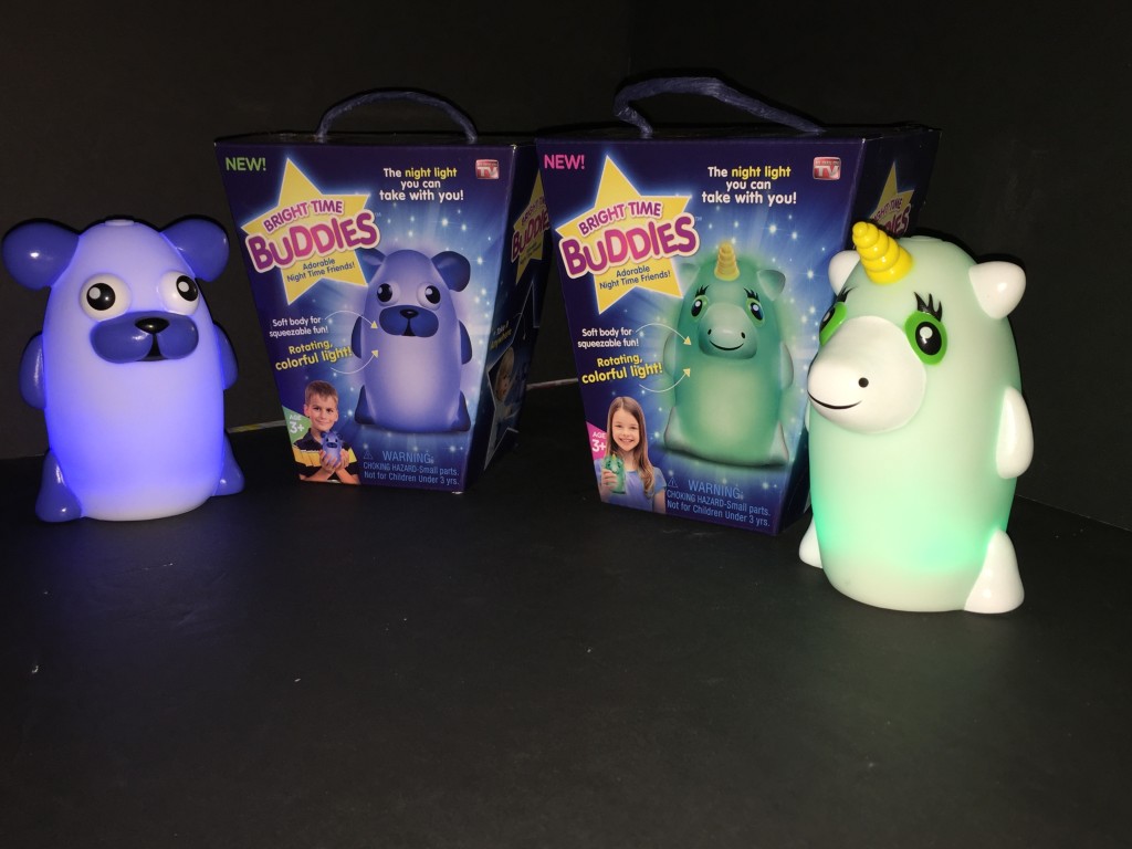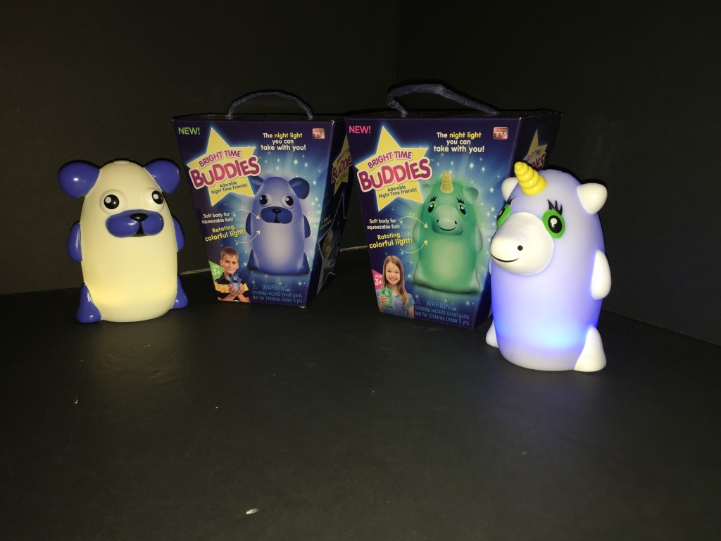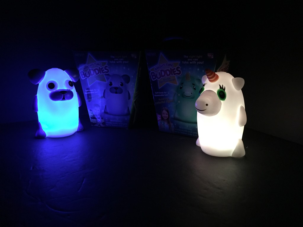 Bright Time Buddies (Sample received for testing in exchange to my honest and unbiased opinion and this opinion is not compensated) The night lights are just adorable for any child. The best part is these are squeezable and fun to watch the light changing colors. The power buttons on top of their heads. The night-time buddies take 3 AAA batteries that aren’t included. The battery compartment you will need a screwdriver to open. I completely love how the colors change it’s so relaxing to watch the night-time buddies. I have Dreamy Dog and Shimmer Unicorn they are really cute and are hand size for small children. Very light weight for them to handle. The outside texture is rubber with painted colors on the eyes, face, other parts on the night-time buddies. Any child would like these not only for at home, but you can take these little guys everywhere like camping, staying overnight at grandma’s house, or vacations.