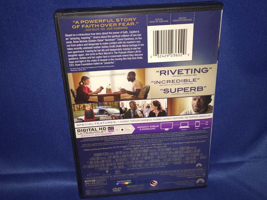 I don’t want to tell too much more about the movie other than you must see this movie it’s worth seeing. This is a true story and the DVD has bonus clips of the real Ashley when she was on Oprah and she talks about her experience with Brian Nichols and how the book gave her faith.