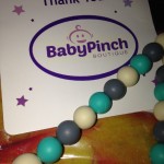 Chew-Choos ‘Playdate’ Silicone Teething and necklace. (I received in exchange for my honest and unbiased review.) The colors are very vibrant and the round silicone teething necklace and the necklace clasp is break-away not screw in, provides extra safety for mom and baby. So very easy for that teething baby to keep them busy while you are shopping or just to simply keep them satisfied so those little gums won’t hurt them. These silicone round beads are non toxic to a little one. Also this would look good for the mommy on the go and needing to dress up with a baby in tow this is something that they will stay busy with and mommy will look pretty and baby will be happy and mommy will too.
