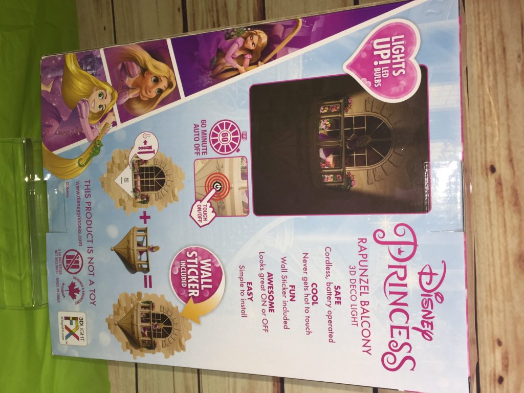 My granddaughters’ bedroom decor is made up of a variety of princesses themes so adding the Disney Rapunzel Balcony 3D light is unique and not like the other princesses themes on my granddaughters’ wall. This makes a wonderful night light for her at night. My granddaughter likes the way the balcony lights up around Rapunzel and adding the wall sticker makes this whole setup look awesome.