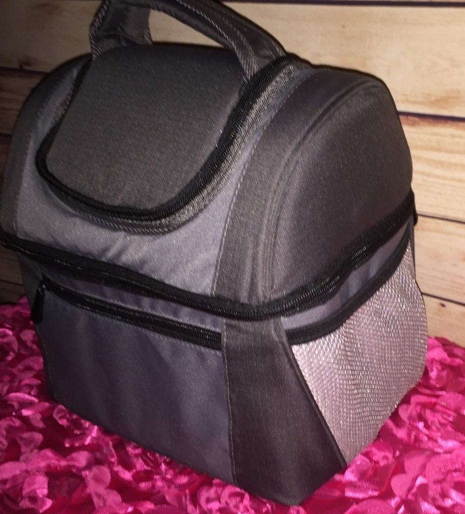 Extra Large Dual Compartment Insulated Lunch Bag. I have been looking for a larger lunchbox for my husband and this one is a extra large lunchbox. He now has room to take his can drinks total of 9, bottle drinks and food with him all in one lunchbox. There are compartments to Storing Keys, Cellphones or Extra Snacks.