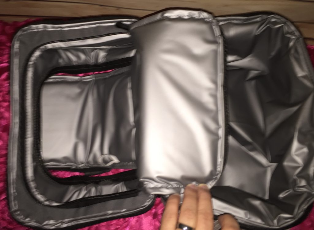 What a awesome lunchbox it has many compartments and you can divide or unzip the center and use it as a whole. The lunchbox keeps food cold & warm. The handle is very durable and comfortable to carry. The inside is of PEVA Heat Sealed liners which keeps your items colder, longer.