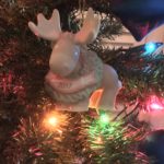 The Christmas moose is wearing an evergreen Christmas wreath bearing the year 2017. I’ve decided that I’ll be collecting ornaments every year starting with Merry Christmoose 2017 added to my collection. There is nothing like remembering those funny, special moments in life during Christmas time with those special treasured ornaments.