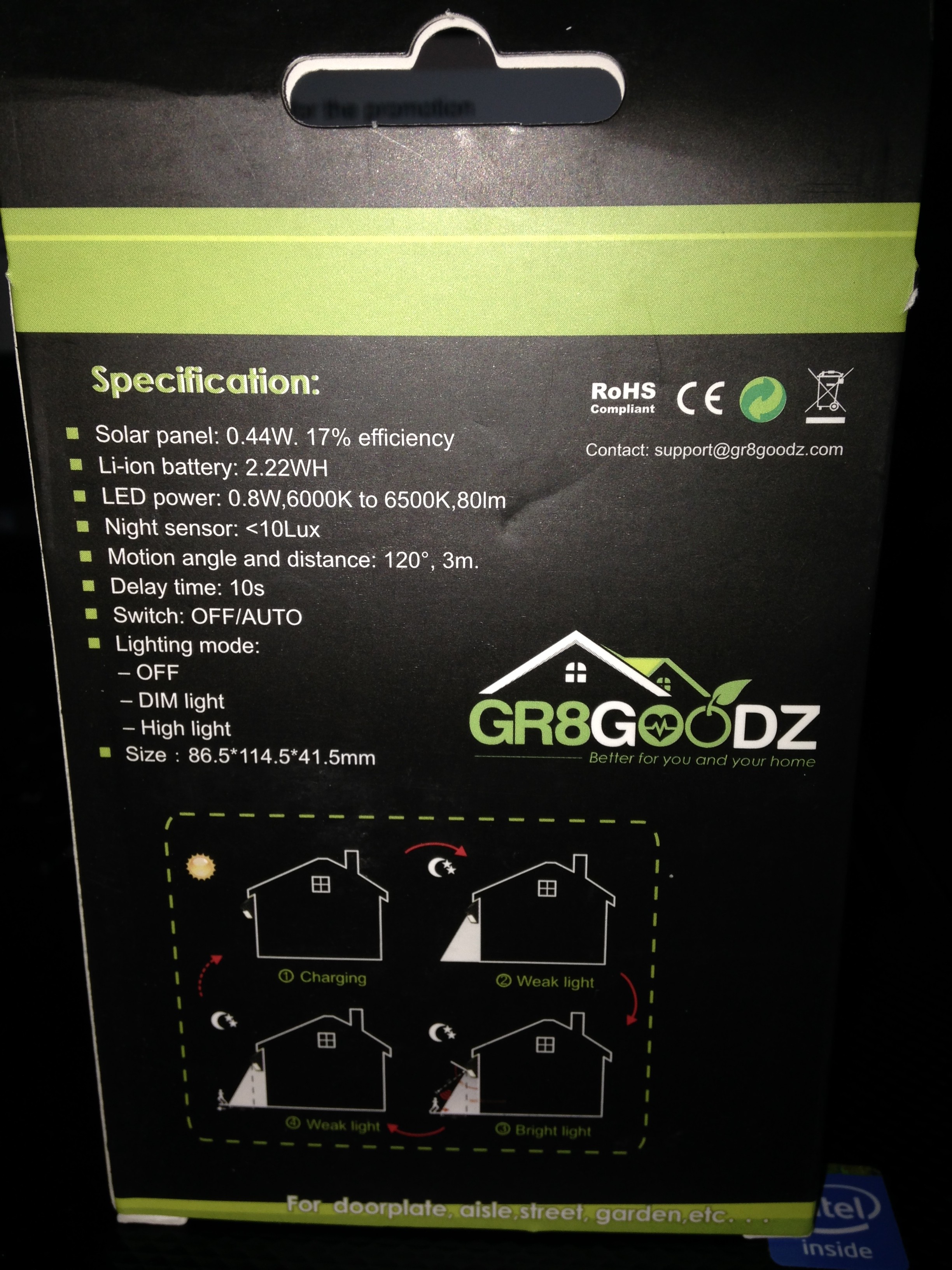 Outdoor Security LED Motion Sensor Light. (Sample received for testing in exchange to my honest and unbiased opinion and this opinion is not compensated) This doesn’t take batteries and no wires to hook up, also the integrated design of PIR motion sensor for night-time or CDS. I also liked the fact that this is solar-powered makes for saving power leaving a front porch light one. The other great thing about this is that its automatic recharge without having to use batteries, or wiring all done with the power of the sun. The great thing about this is it does over 12-hours of lighting time per night. One other great thing about this outdoor security LED motion sensor light is that it’s waterproof, heat-proof, durable, automatic energy-saving on/off switch. I didn’t have any issues installing this was super easy. This will automatically dim when no motion detected. This is super bright with 80 Lumens brightness, PIR sensor activates at 9 feet, 120-degree arc of sensitivity. I have this at my back door because it’s always darker and this lights up without any problems.
