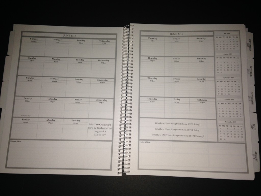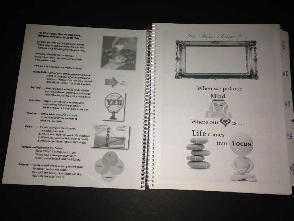 Planner with Calendar (Sample received for testing in exchange to my honest and unbiased opinion and this opinion is not compensated)This is a great planner to have if you are a blogger. I use this to keep up with my blogging, product reviews, appointments, etc. The pages are very readable the front cover & back cover laminated. The pages marked so you know where to go.