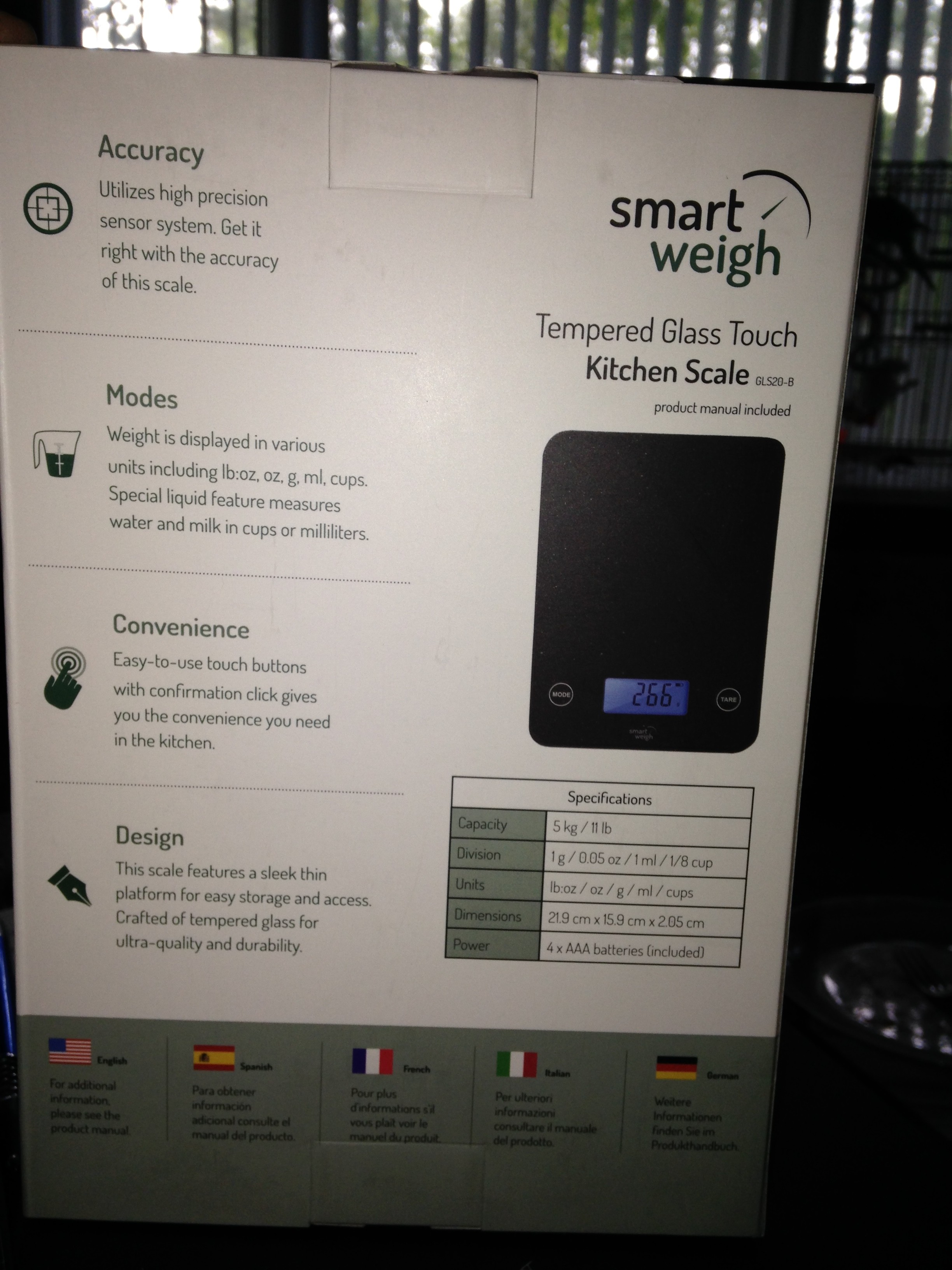 Smart Weigh- Black Digital Food Scale (I received the product in exchange for my honest and unbiased review.)The scale is for the kitchen I like to use this when cooking it makes controlling how much I should be eating by measuring the weight. The scale is slick and comes with batteries, the LED screen is blue and very easy to read. The other thing I like it doesn’t take up a lot of room on my counter.