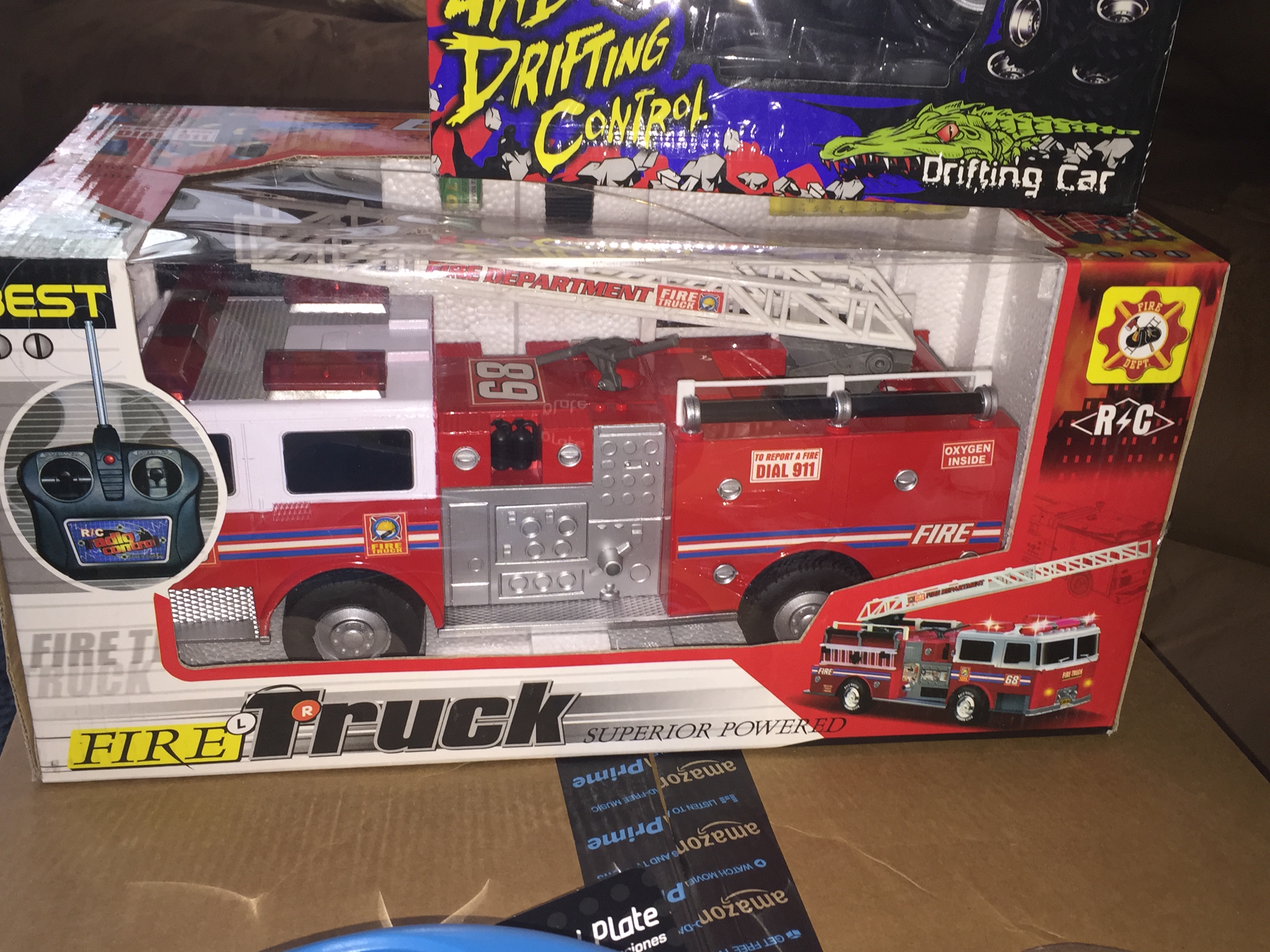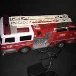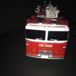 Super Express RC Fire Truck. (Sample received for testing in exchange to my honest and unbiased opinion and this opinion is not compensated) This fire truck has charging batteries. In order to charge the fire truck, there is a cord that plugs into the bottom of the fire truck and you plug the other end into the wall socket. The controller came with a 9V battery. The fire truck lights up and goes forward and backward.