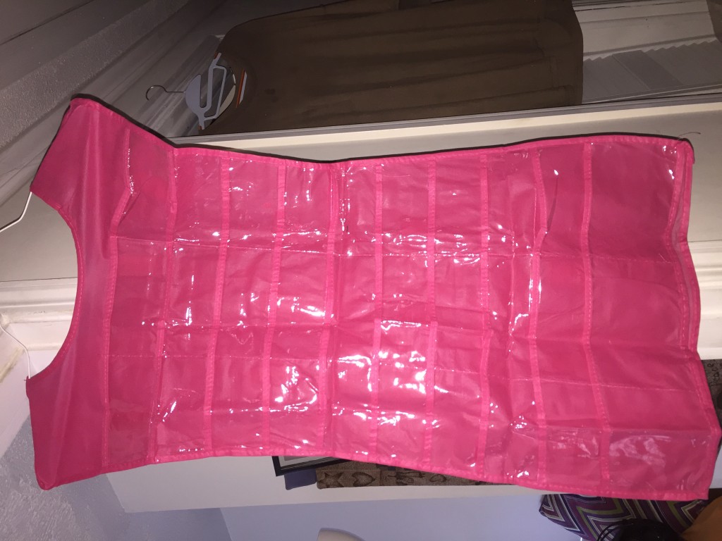 Valdler Dual Sides Hanging Jewelry Non-woven Organizer 30 Pockets 14 Hook (Rose). (Sample received for testing in exchange to my honest and unbiased opinion and this opinion is not compensated) My daughter has a lot of jewelry and she is forever needing something like this to be able to keep her earrings, bracelets, necklaces. There are 30 pockets to store earrings, bracelets and 14 hook and loops for necklaces or bracelets. This has all the pockets on the front and the hook and loops on the backside. Very pretty rose color. pm84c6a0a2fffd28d1c02b35b714cab9d3